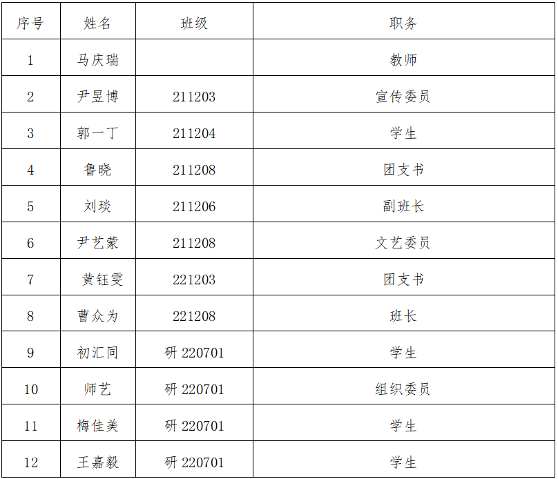 发展对象名单如下: