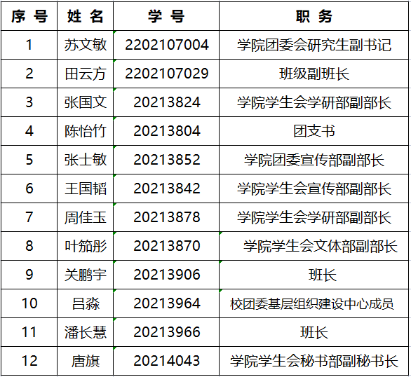 发展对象名单如下: