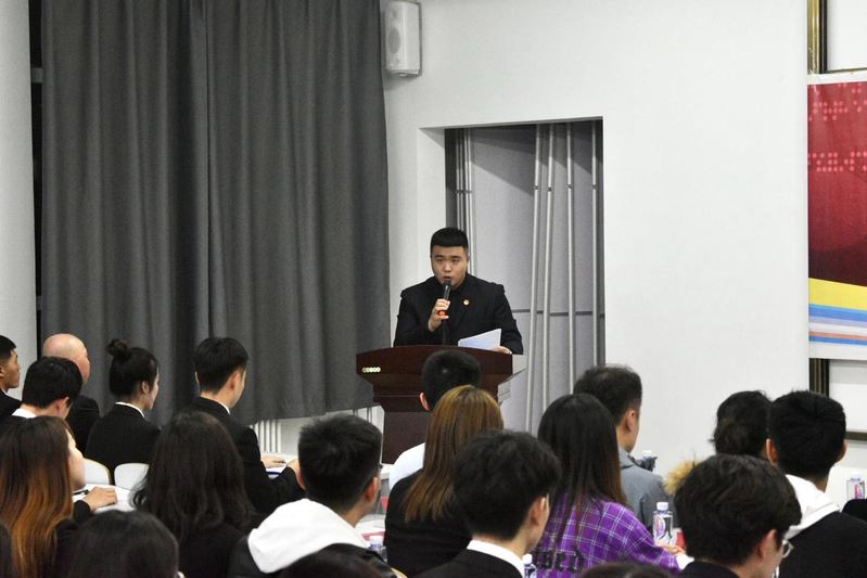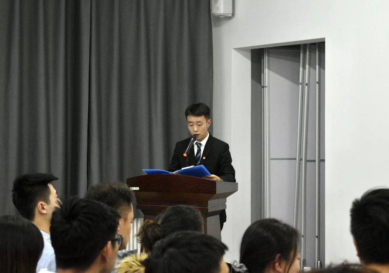 第十八届学生会执行主席刘宇鑫作工作总结,并对新一届团学组织提出期望:要团结带领全院青年,砥砺前行、共同奋进,充分发挥桥梁纽带作用,要为广大同学提供最温馨的服务和强有力的保障,为黄金岛