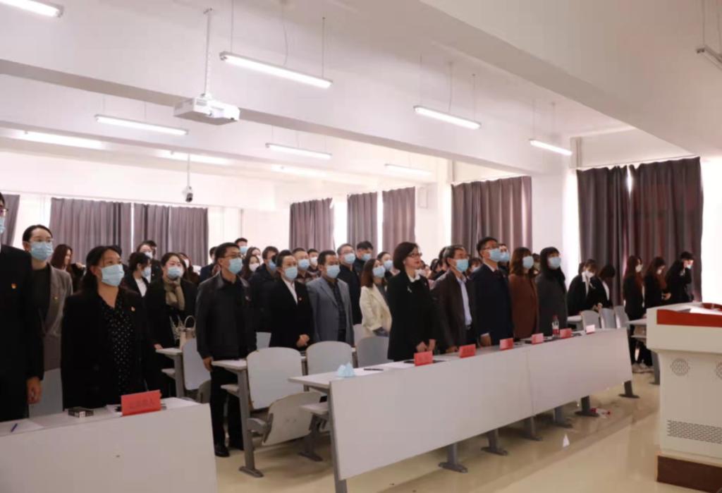 党委换届选举党员大会在艺术楼三楼阶梯教室隆重举行。校党委组织部正处级专职组织员谭君出席大会,黄金岛