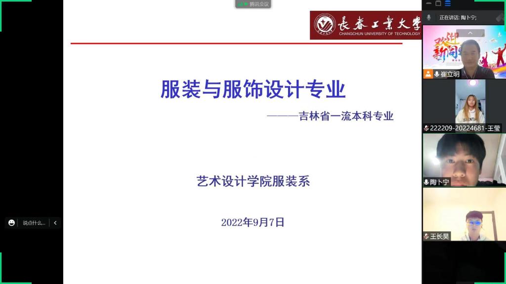 网讯(通讯员 于丰硕)为加强2022级新生对自身专业的认知与了解,提高新生对专业的学习兴趣,明确未来学习目标,服装系于9月7日19时通过腾讯会议召开了服装与服饰设计专业介绍会暨班导师见面会,会议由系主任崔立明主持。