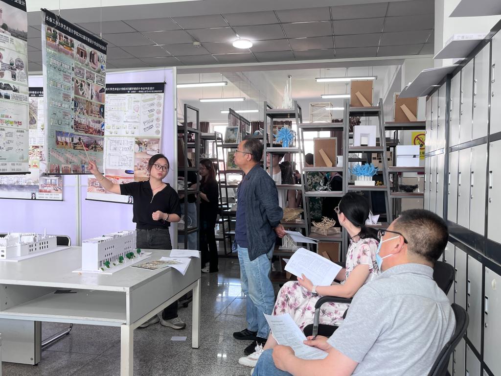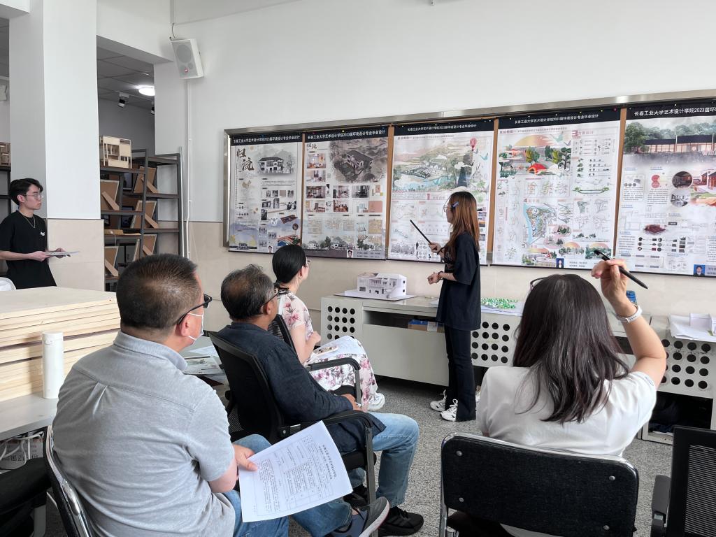 在北湖校区东区艺术楼举行2023届本科毕业设计(论文)答辩。服装与服饰设计专业、服装设计与工程专业、环境设计专业、动画专业和视觉传达设计专业共202名毕业生参加本次毕业答辩。