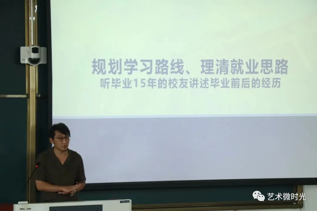教师郭亮,2011级校友、长春市莱迪珂文化传播有限责任公司总经理温靖喆,2016级校友、吉林省今和建筑装饰工程有限公司总经理李广鹏主讲。教师代表雒薇艳、马庆瑞应邀参加活动。分享会分别由黄金岛