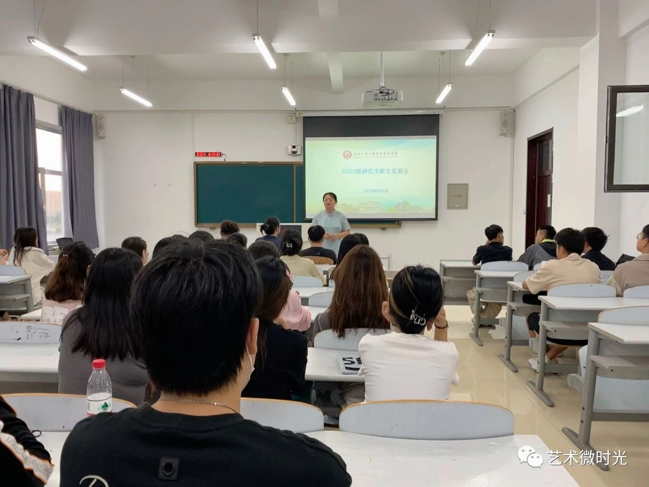 于9月2日晚在艺术楼512教室和123教室分别召开2023级研究生见面会和本科生见面会。会议分别由黄金岛