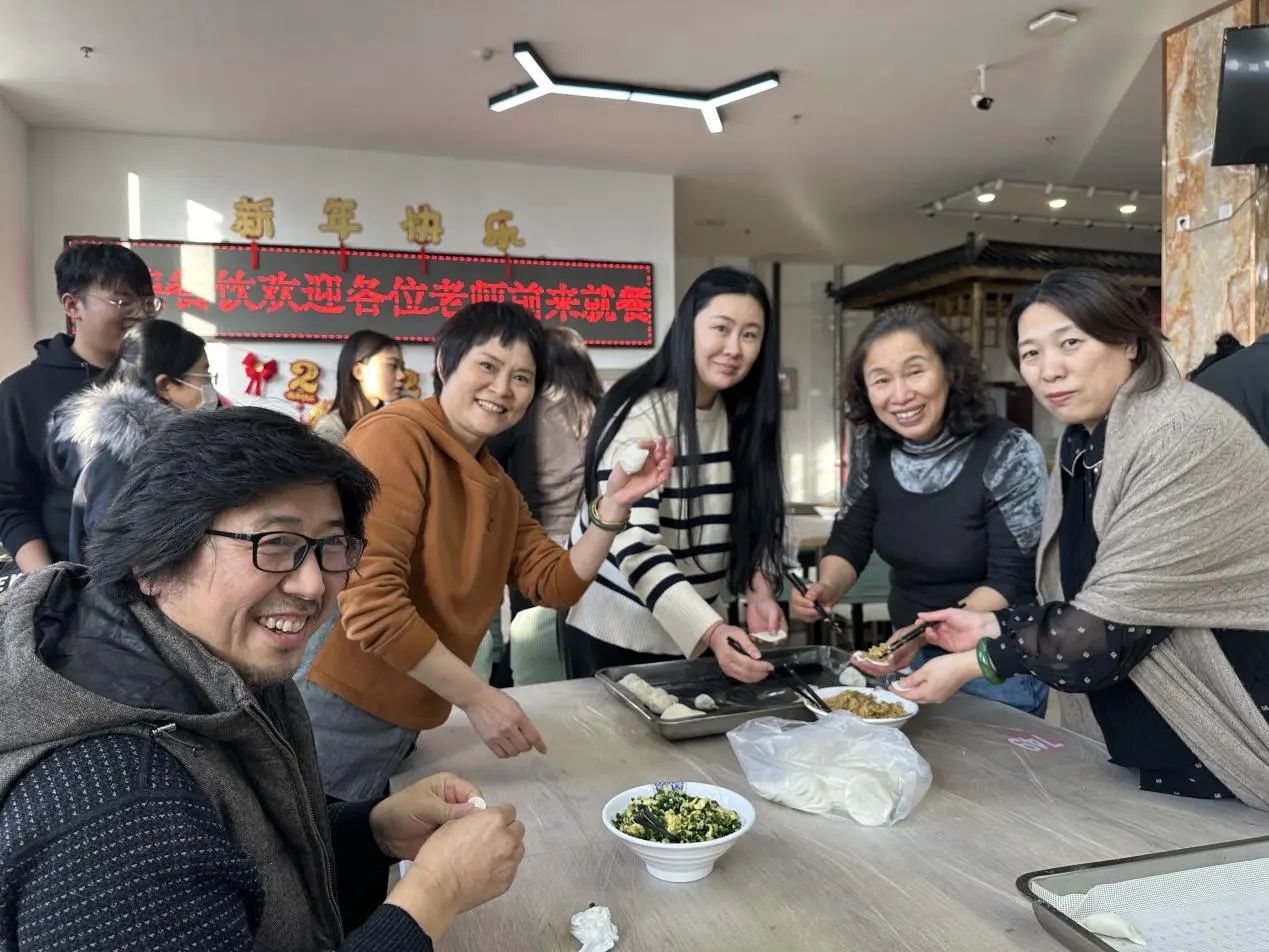 在热闹的游戏过后,大家一起包饺子,边包边聊天,有说有笑,和谐欢快,进一步增进了黄金岛