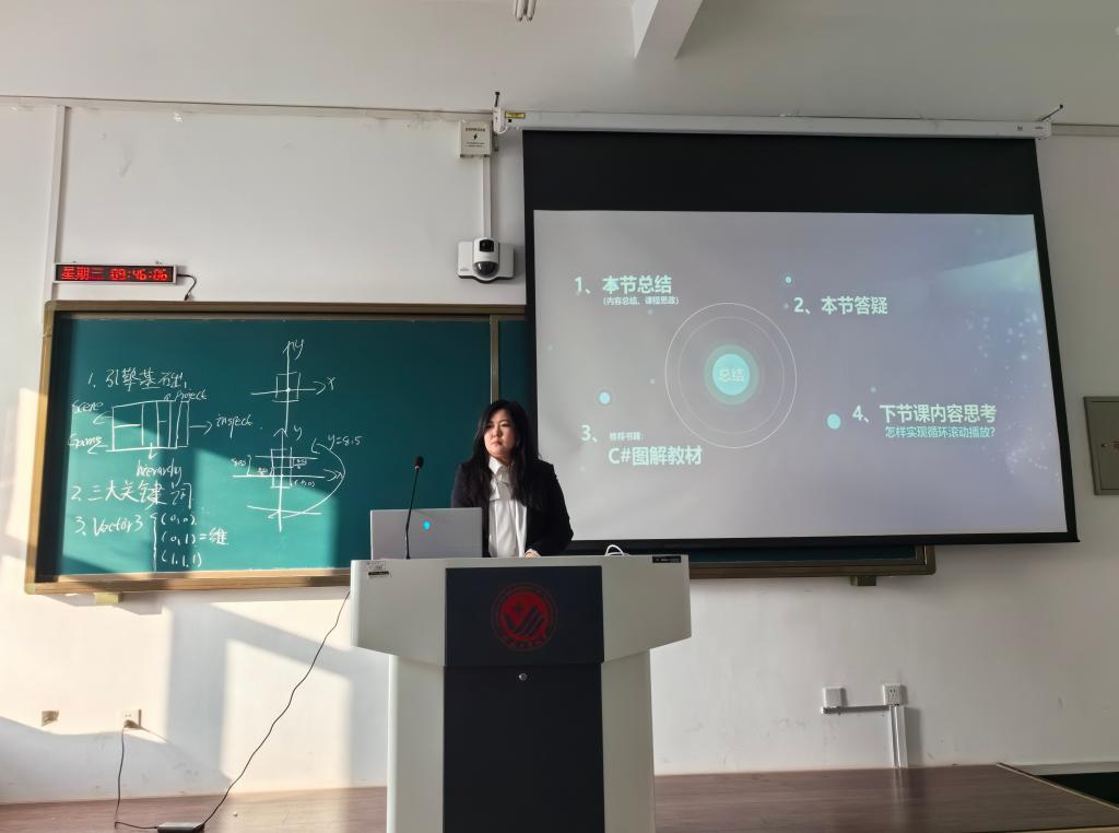 王盈舒老师讲授《动画软件基础C1》课程、付琳贺老师讲授《服饰品设计2》课程、刘玥明老师讲授《电脑美术设计B》课程、丁翔老师讲授《空间形态构成》课程。考核领导小组成员对于课程教学设计的完整性、课程教学目标明确性、课程思政元素有机融入以及教学组织方式合理性等环节进行综合考核。