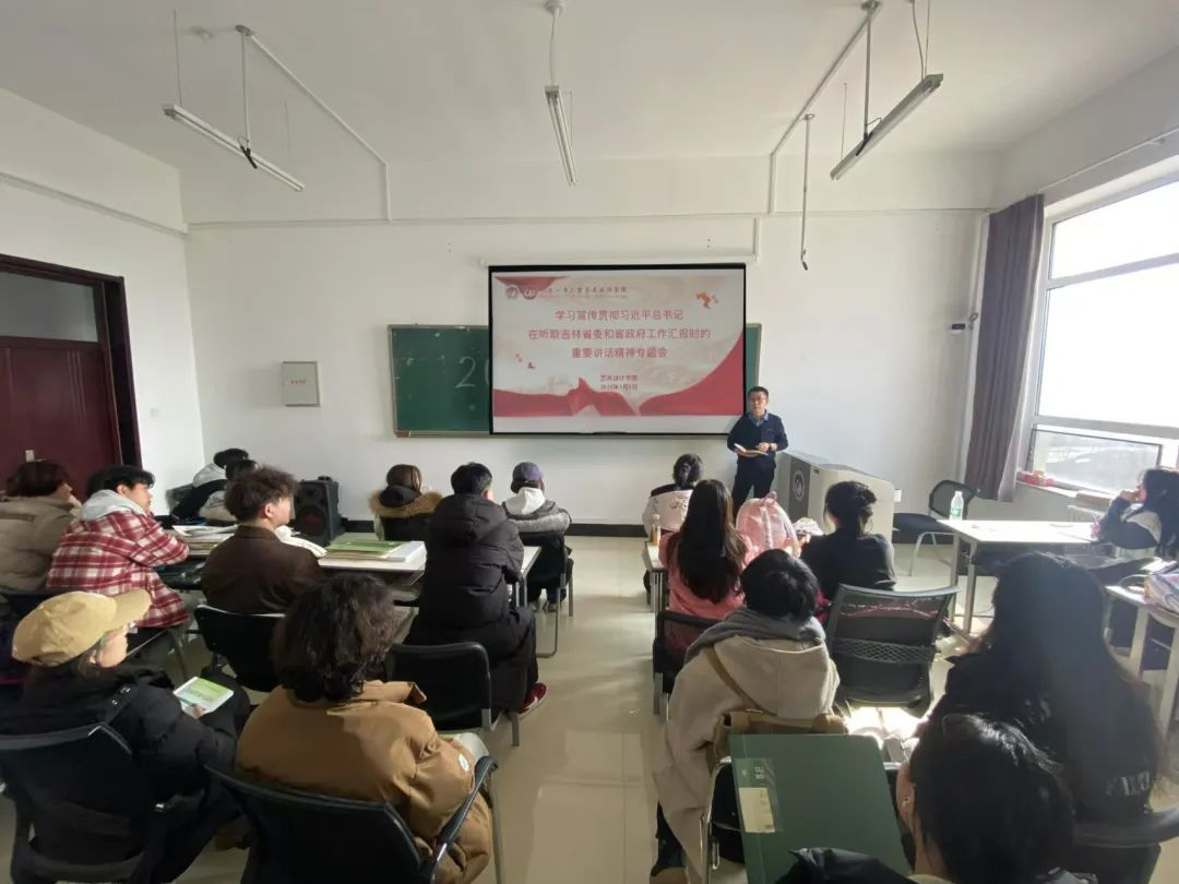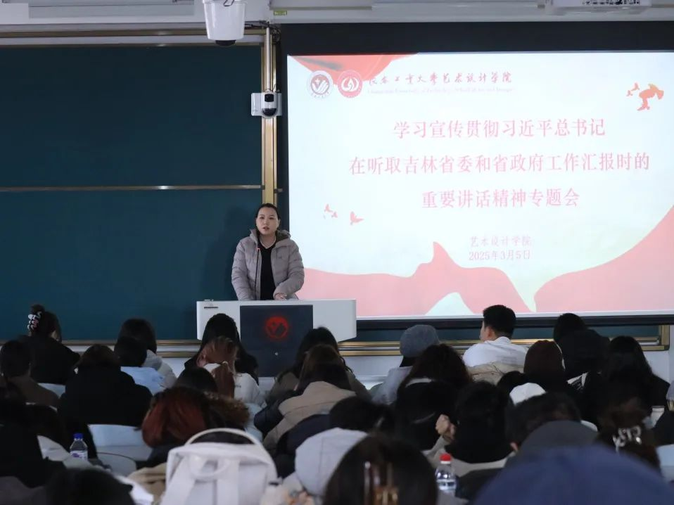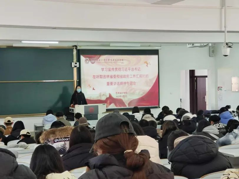 党委高度重视,要求各年级辅导员以年级会形式开展集中宣讲,结合专业特色解读“新时代东北全面振兴”战略。将课程作业与吉林文旅IP设计、非遗活化项目结合,用设计语言讲好东北振兴故事。