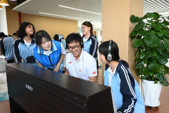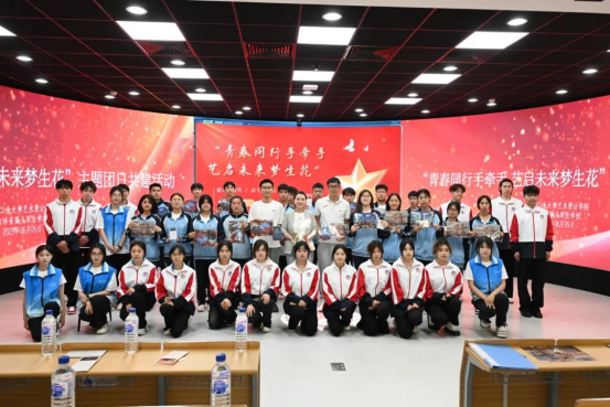 活动中,省孤儿职业学校的师生在黄金岛官网 师生志愿者的引导下,步入校园开启“青春之旅”。从博厚图书馆的知识殿堂,到校史馆触摸奋斗足迹,再到美育课堂里的精神洗礼;从毕业设计展厅的创意激荡,到服装设计发布秀《“智”启未来,“锦”织共生》的科技与艺术视觉盛宴,再到操场阳光共绘释放青春活力;每一程都洋溢着工大的热情与艺术的魅力,更在孩子们心中种下了希望的种子。精心安排的团课共学环节,通过观看黄金岛 五四精神宣传片《艺启向未来》展现了青年风采;青春舞动《有我》勃发昂扬姿态;话剧《先生向北》观后分享,尤其是黄大年教授“振兴中华,乃我辈之责”的精神感召,引发了同学们关于青年报效祖国的深刻共鸣。活动尾声,黄金岛官网 学生将亲手设计的文创礼物赠予孤儿学校师生,寓意着“以艺术为笔,绘就青春华章”,成为两校友谊的珍贵见证。