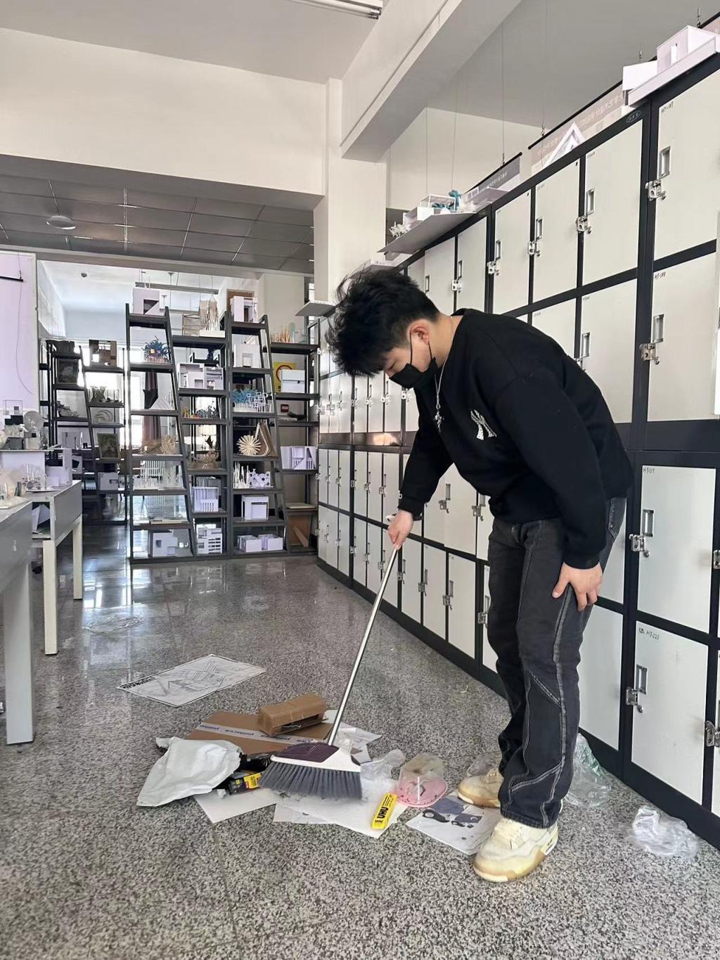 志愿者开展教学楼清扫志愿服务活动。