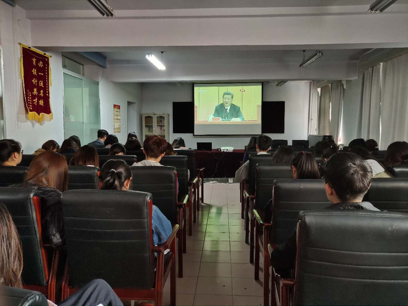 党委组织师生党员、入党积极分子在艺术楼二楼会议室集中收看纪念五四运动100周年大会实况,认真聆听习近平总书记在纪念大会上的重要讲话。习近平总书记发表的重要讲话,引发与会人员的强烈反响。