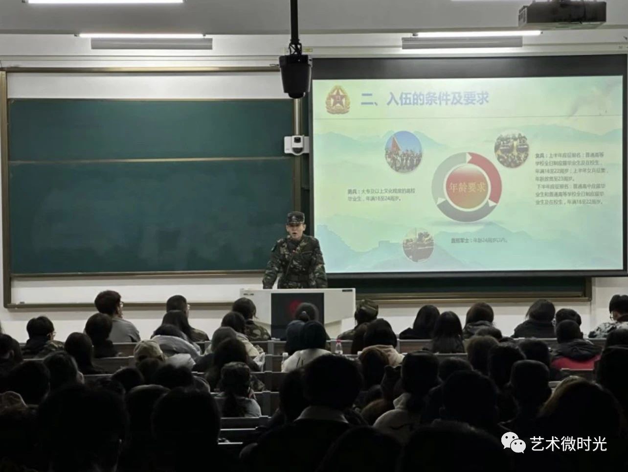 于10月25日在艺术楼一楼111阶梯教室举行2023级新生征兵政策宣讲会,动员广大青年学生响应祖国号召,积极投身国防建设。黄金岛