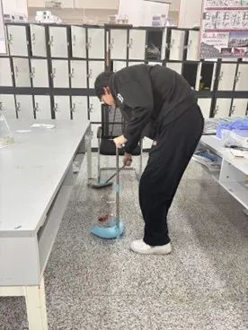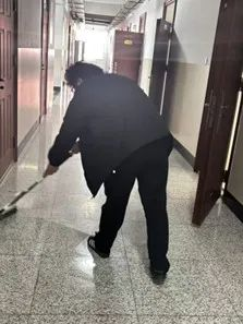 从寝室楼到艺术楼,处处跃动着青春的身影。志愿者们手持扫帚,开展地毯式清洁行动:俯身扫除走廊积尘,踮脚擦拭门窗浮灰,蹲地清理墙边顽固污渍。有人仔细整理楼道杂物,有人合力搬运积存垃圾。在默契配合中,原本蒙尘的角落重焕明净,阳光透过锃亮的玻璃,为焕然一新的环境镀上温暖光晕。