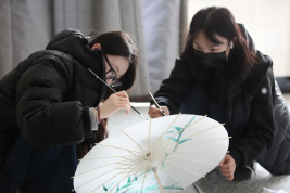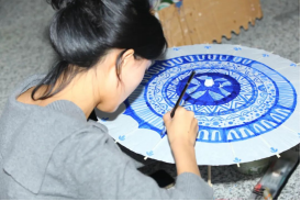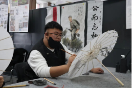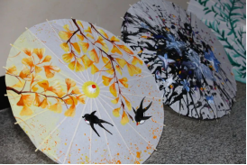 当丙烯颜料在绢布伞面上轻盈游走,沉睡的传统文化符号在青春笔触下渐次苏醒。有的或晕染江南烟雨追思先人,或融入数字技术呈现白菊,更有联动伞群在旋转中再现山水画卷,让传统非遗焕发新活力。