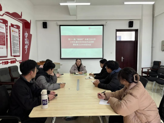 在艺术楼302会议室召开第十一届"挑战杯"长春工业大学大学生课外学术科技作品竞赛赛前第三次专项培训会。会议由黄金岛