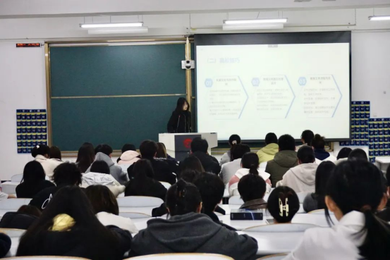 在CAD软件分享环节,主讲学生黄钰雯通过展示实际项目图纸,详细演示二维绘图的精准绘制步骤、三维建模的复杂流程以及严谨规范的图纸标注方法,将复杂的技术要点以通俗易懂的方式呈现给同学们。