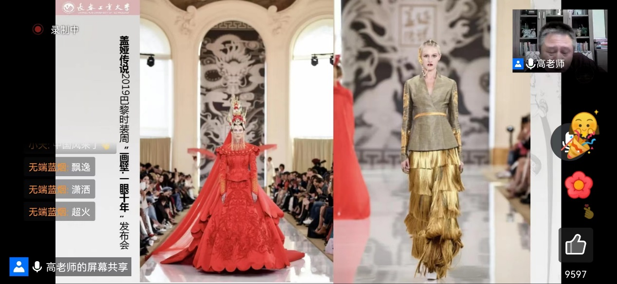 教师高庆阁老师主讲。云端200余人共同观看讲座,高庆阁老师从“国潮”的定义、缘起、发展入手,通过品牌发布会和成衣风格进一步解读 “国潮”在当今世界时尚圈发挥的重要作品。讲座现场热烈,受到广大师生的好评。