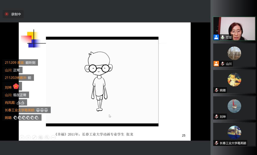刘桂华老师主讲。刘桂华老师首先从“动画”与“动画片”的概念做了明确区分。然后从动画的技术视角、审美视角等方面做了基本介绍。最后从动画的审美特征展开并深入探讨了动画的陌生化、极致化、预言化、趣味化、戏虐化、狂欢化等方面的内容。期间欣赏了多部经典动画短片。