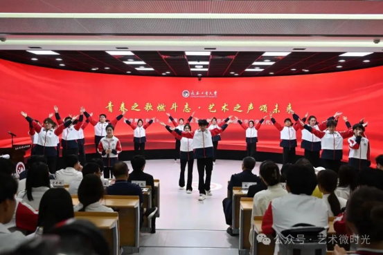 学子以歌伴舞《有我》致敬育人使命。铿锵的旋律与充满张力的演绎,生动诠释了“请党放心,强国有我”的青年誓言,彰显艺术学子服务时代发展的坚定信念。